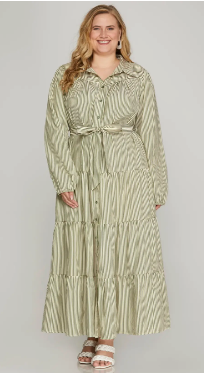 Breezy stripes meet effortless elegance in this maxi dress, designed with long sleeves and a flowing tiered silhouette. The side tiers create graceful movement, while hidden pockets add a touch of practicality. Perfect for casual days, weekend outings, or dressed-up evenings, this maxi is a timeless staple that combines comfort and style in one.