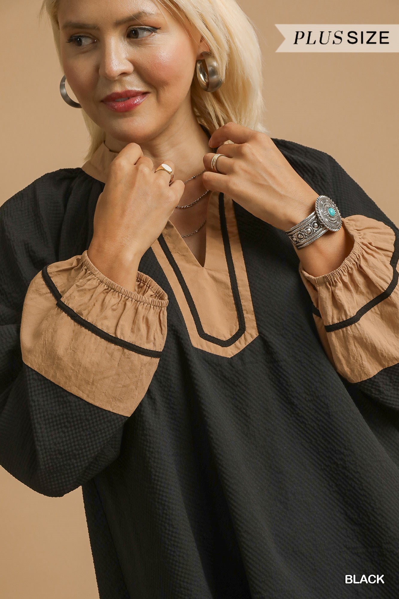 Elevate your everyday style with The Rowan Dress, a chic blend of modern lines and effortless comfort. Crafted in a soft textured fabric, this dress features a striking deep V-neck framed with a bold contrast collar for a touch of sophistication. The 3/4 balloon sleeves with matching contrast cuffs add volume and balance, while the straight hem with side slits and a wide contrast border gives it a polished finish. Fully lined for a smooth fit, this versatile piece transitions seamlessly from work to weekend.