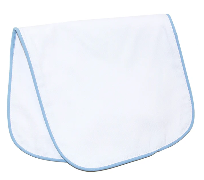 Soft, absorbent, and thoughtfully designed—our White Burp Cloth with Trim is a must-have for every parent. The classic white fabric pairs perfectly with a subtle blue trim, adding a touch of style to practicality. Whether it’s for burping, wiping little spills, or cuddling up, this cloth is gentle on baby’s skin and easy to clean.