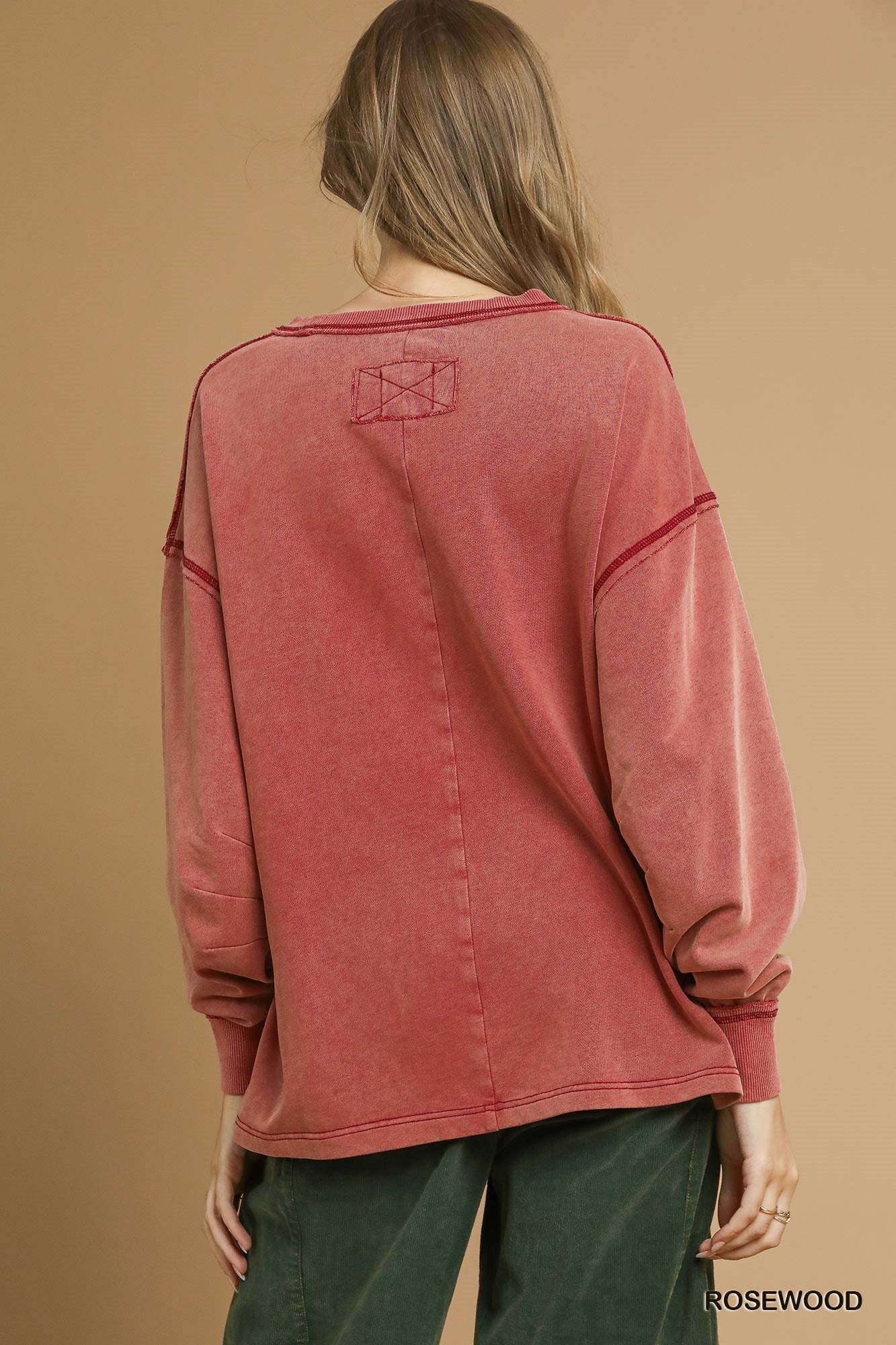 Laid-back and effortlessly cool, this oversized top is crafted from soft French terry with a vintage-inspired mineral wash finish. Designed with long sleeves, raw edge detailing, and side slits at the hem, it delivers both comfort and style. Easy to pair with leggings, jeans, or shorts, this relaxed top is a must-have for casual days.